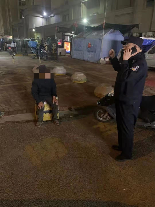 出警民警王仁良、辅警王鹏迅速赶到现场找到老人后,报警人称这位老人在自己店内已经坐了两个小时,疑似有老年痴呆,安徽口音,口齿不是很清楚,问不清具体住在哪。介绍完情况后,报警人就离开了现场。